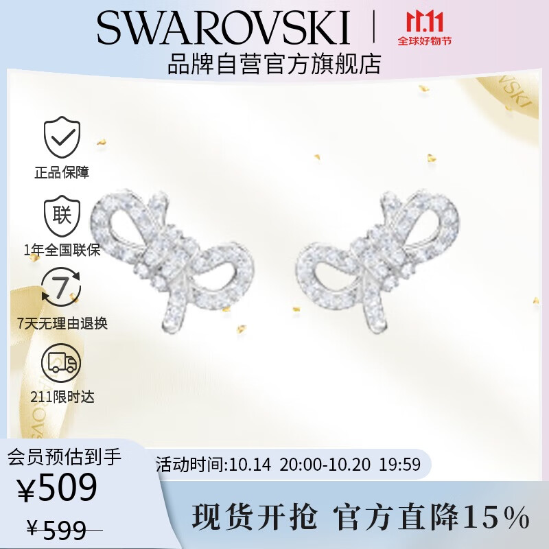 施华洛世奇 LIFELONG BOW蝴蝶结耳钉耳环耳饰生日礼物女5627345