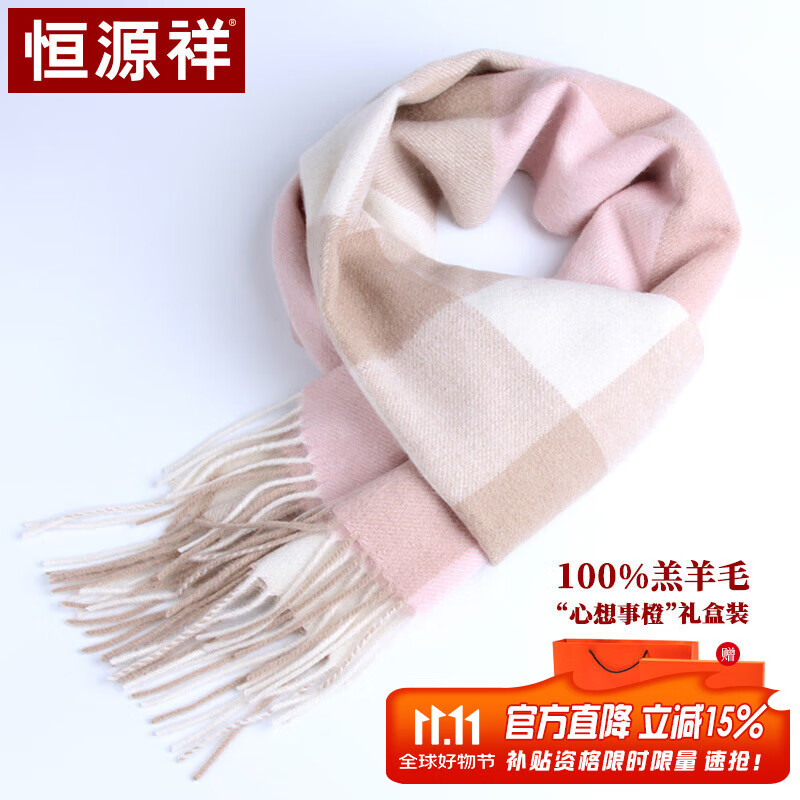恒源祥纯羊毛围巾女士秋冬季披肩保暖围脖妈妈生日礼物女送长辈礼盒装