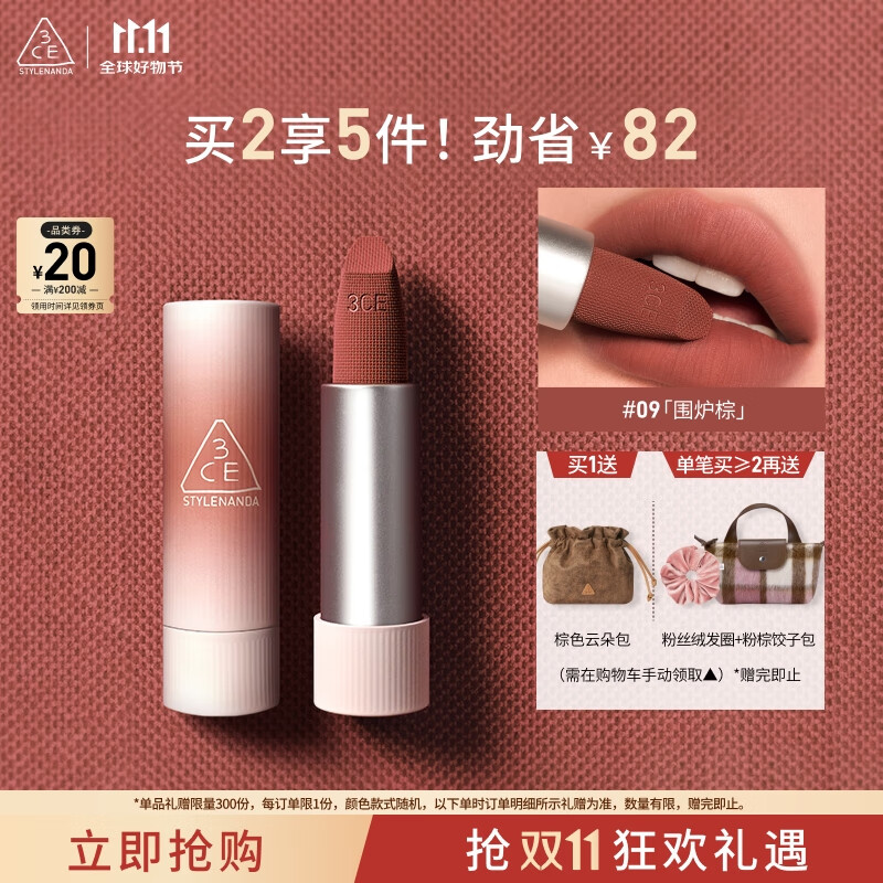 3CE口红唇绒围炉棕#09TAUPEBEIGE唇膏生日礼物送女友