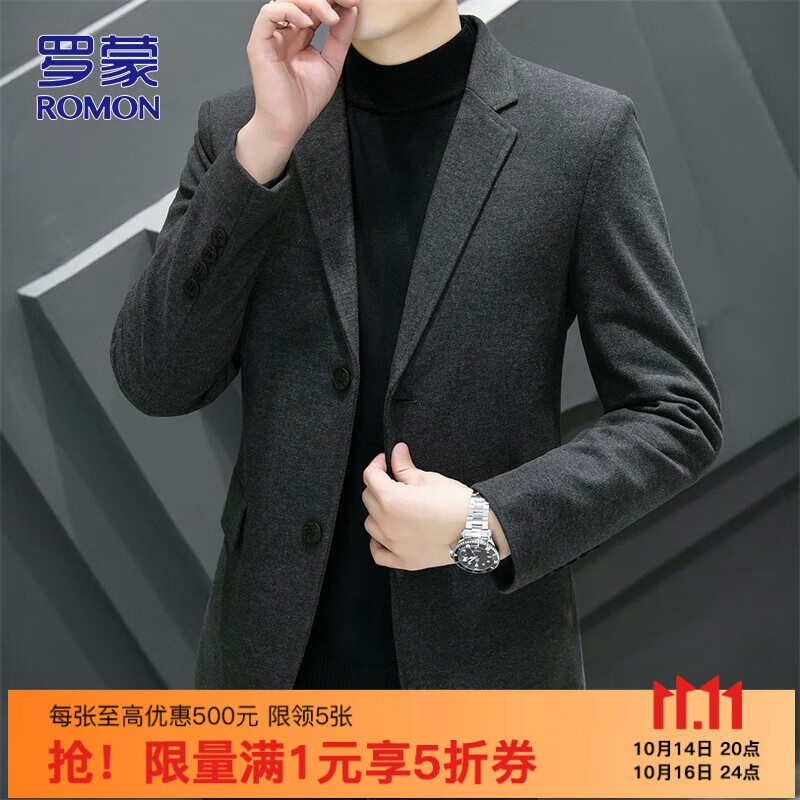 罗蒙(ROMON)西服男士春秋季毛呢西装男商务休闲上衣服外套男装 灰色 2XL