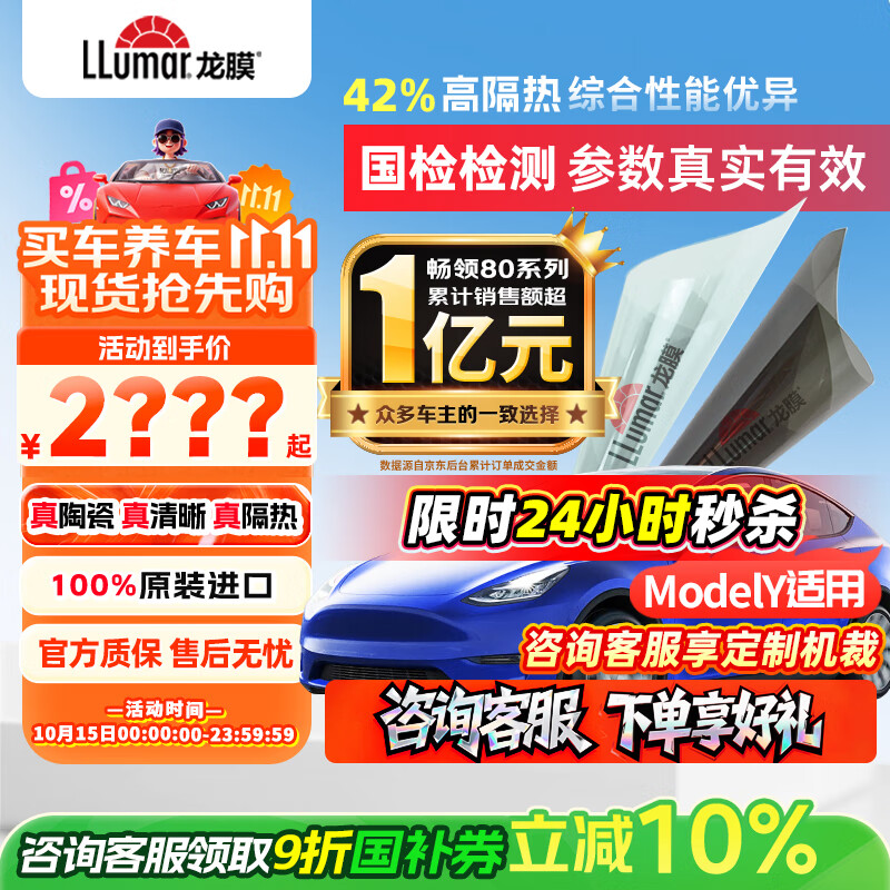 龙膜 汽车贴膜ModelY/3智界R7大众ID适用新能源陶瓷膜隔热膜防晒膜太阳膜防爆汽车玻璃膜车膜包施工