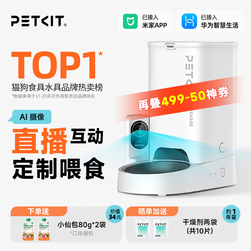 小佩AI智能【新一代可视】自动喂食器2代 直播猫粮碗宠物摄像投喂机 AI可视-喂食器(不粘锅涂层碗版)