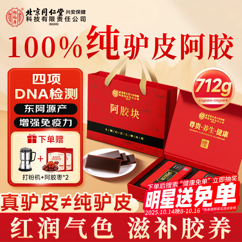 怡福寿北京同仁堂阿胶块512g100%纯阿胶原块真驴皮阿胶糕补气养血礼盒