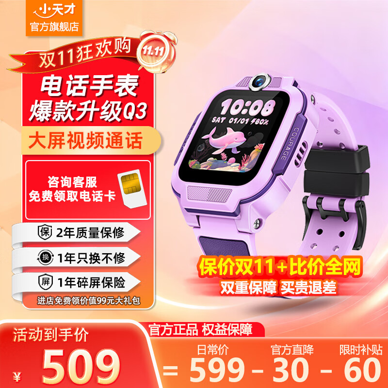 小天才电话手表Q3/N5大屏智能儿童手表防水定位长续航视频通话学生礼物官方正品补贴d2a升级款u5同款 【晒单领京豆】Q3桑染紫【新品】