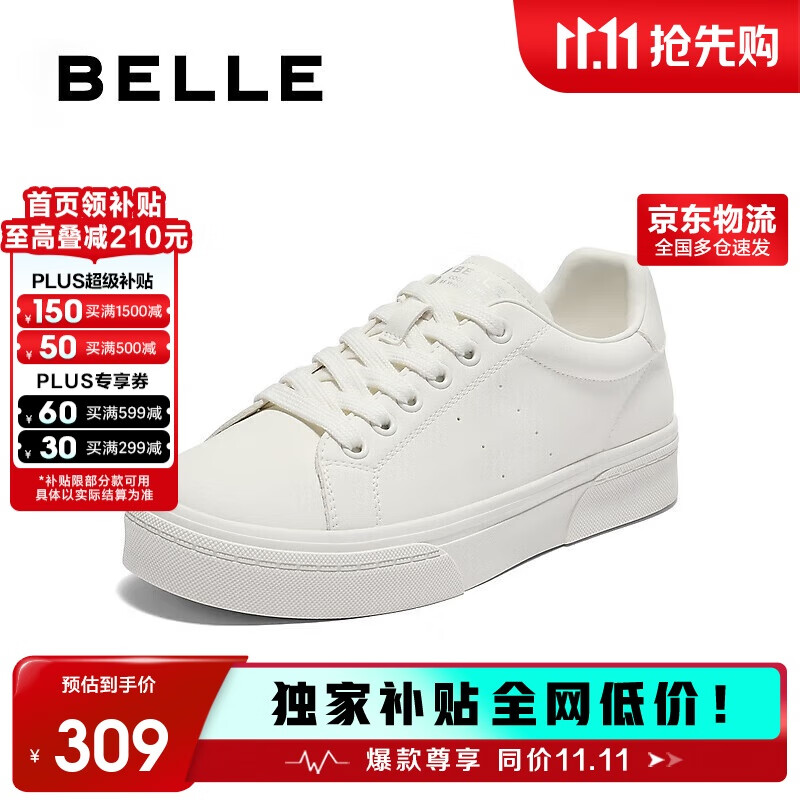 百丽休闲小白鞋2025秋百搭板鞋B2687CM5 白色 37