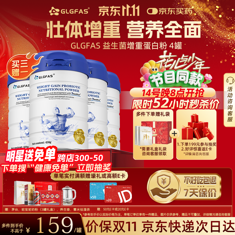 GLGFAS美国进口增肥增胖营养粉瘦人增肌蛋白粉快速长肉长胖奶粉体瘦4罐