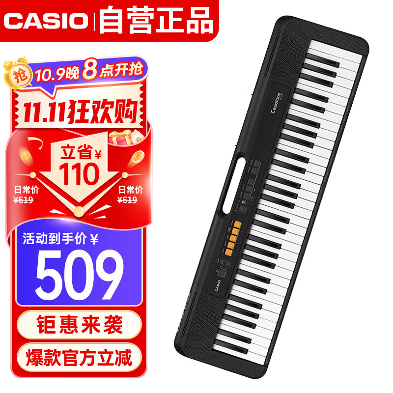 卡西欧(CASIO)电子琴CTS100黑色演奏教学初学时尚潮玩娱乐入门款61键单机款