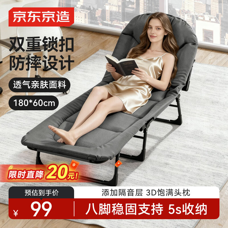京东京造折叠床躺椅美式单人午休床医院陪护床户外行军床可坐可躺180*60cm