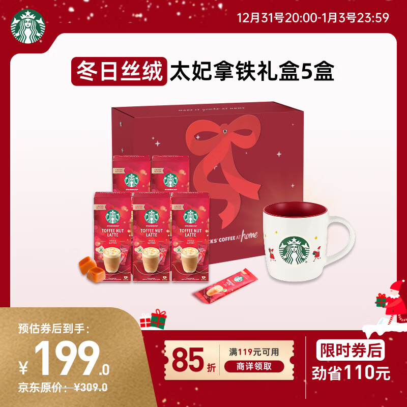 星巴克(Starbucks)精品花式速溶咖啡太妃坚果拿铁礼盒0植脂末 土耳其原装 送礼5盒装