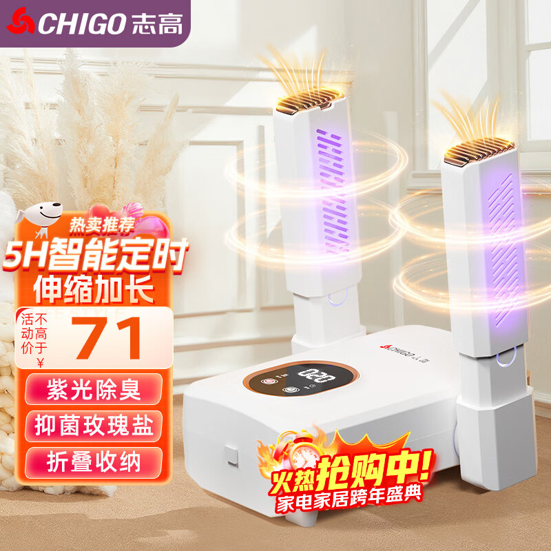 志高(CHIGO)烘鞋器干鞋器暖鞋器 家用紫光除臭烘鞋神器鞋子烘干器烤鞋器烘鞋机可伸缩折叠XJ-006
