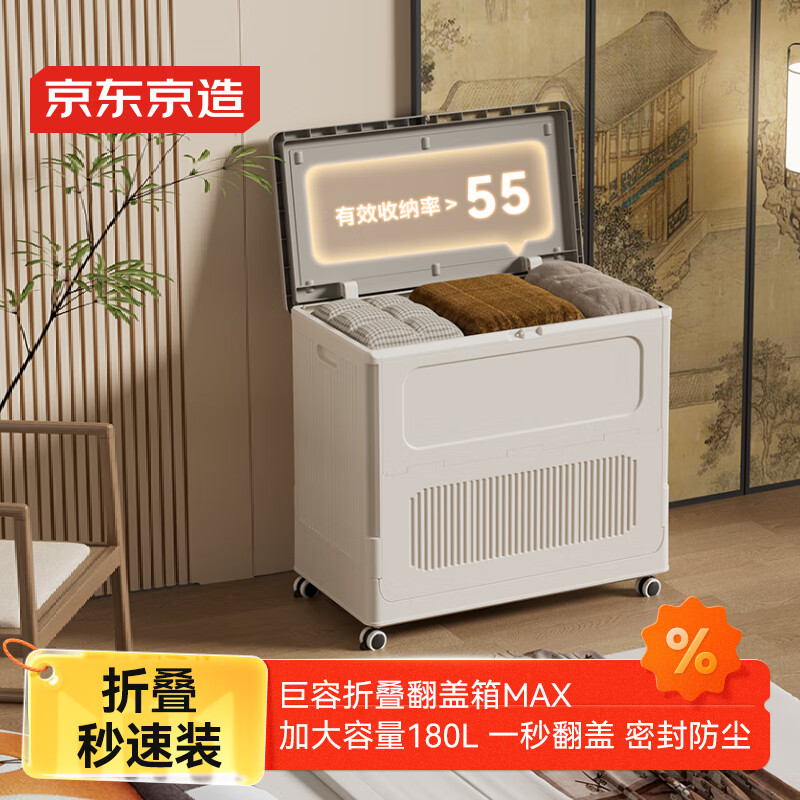 京东京造 【巨能装 升级MAX】收纳箱可折叠翻盖带轮储物箱72.5*40*67.3