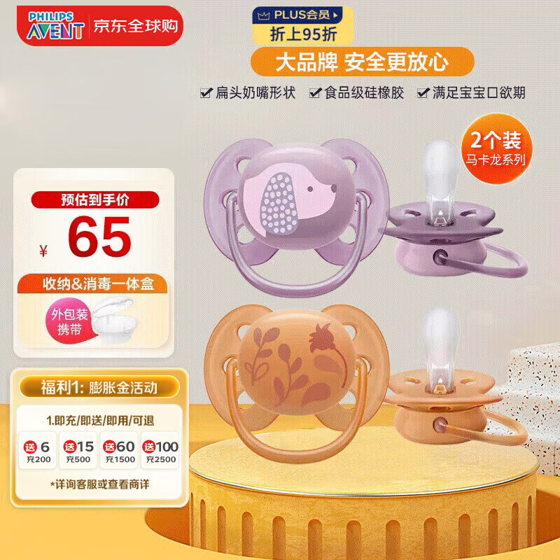 新安怡(AVENT)飞利浦安抚奶嘴 马卡龙系列超柔软硅橡胶 6-18个月 进口