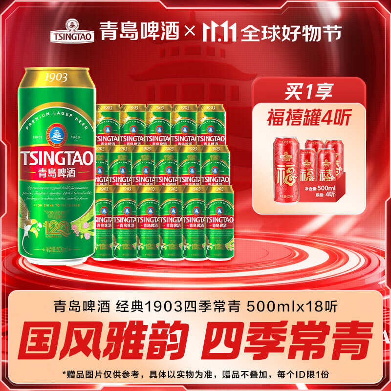 青岛啤酒经典190 3双十一热卖 四季常青 500mL 18罐