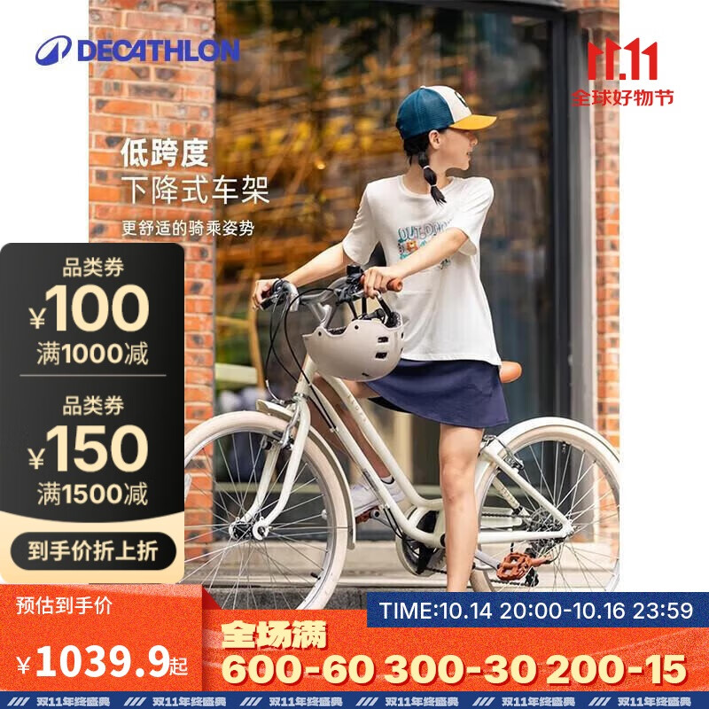 迪卡侬Elops500儿童自行车复古代步变速奶油白24寸青少年单车 4642631