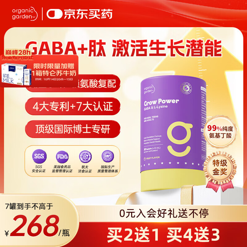 OrganicGarden氨基丁酸γ赖氨酸3-18岁儿童青少年dha补钙生长素促进长高30条/罐
