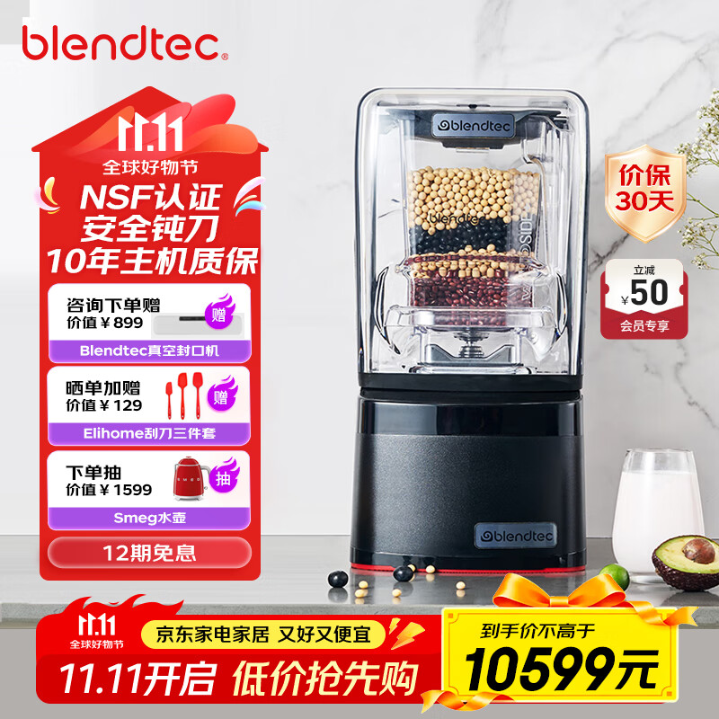 Blendtec柏兰德美国进口破壁机家用料理机低音降噪物理加热1800w触控式800黑色