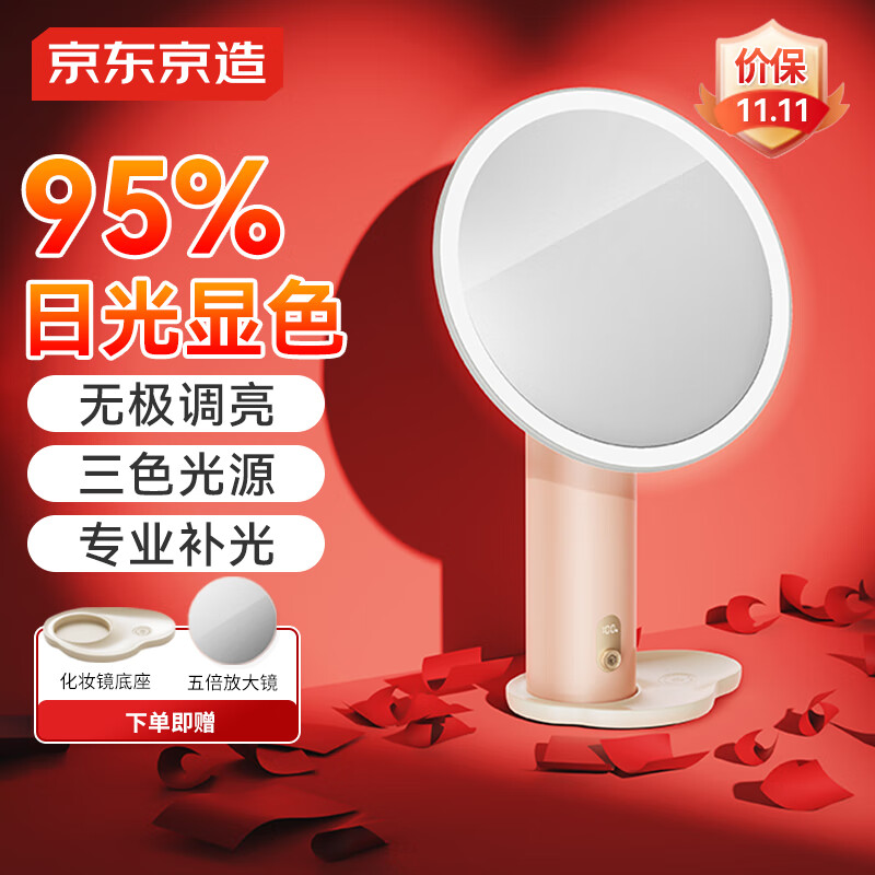 京东京造 三时日光镜化妆镜带灯led桌面高清补光梳妆镜子美妆镜女生闺蜜