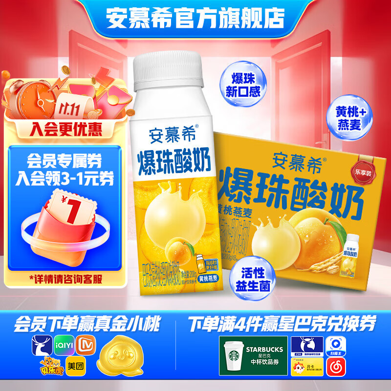 安慕希伊利黄桃燕麦爆珠风味常温酸奶整箱牛奶乳品营养早餐牛奶 黄桃燕麦爆珠200gx8盒