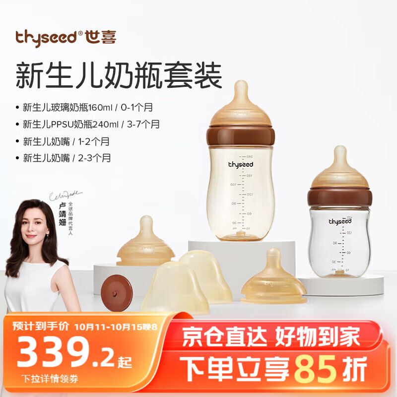 世喜新生儿防胀气奶瓶0-6个月以上玻璃婴儿仿母乳奶嘴(160ml+240ml)