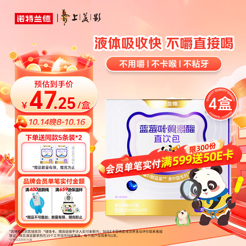 诺特兰德 蓝莓叶黄素酯直饮包 专利叶黄素酯 学生青少年经常用眼【4盒装】