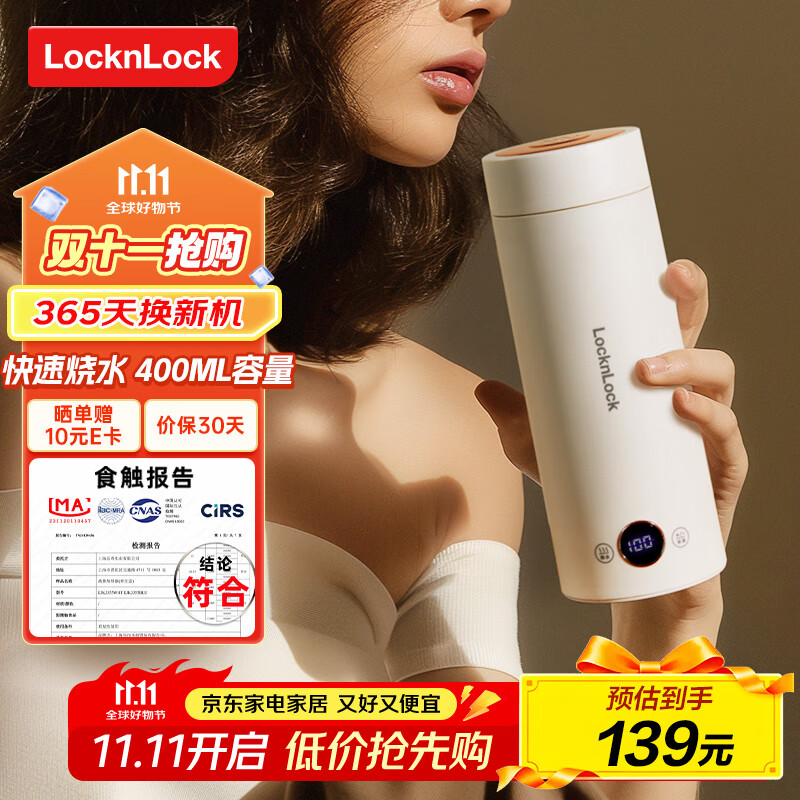 乐扣乐扣电热水杯烧水杯400ml小型便携式烧水壶户外热水壶旅行热水壶家用保温加热杯