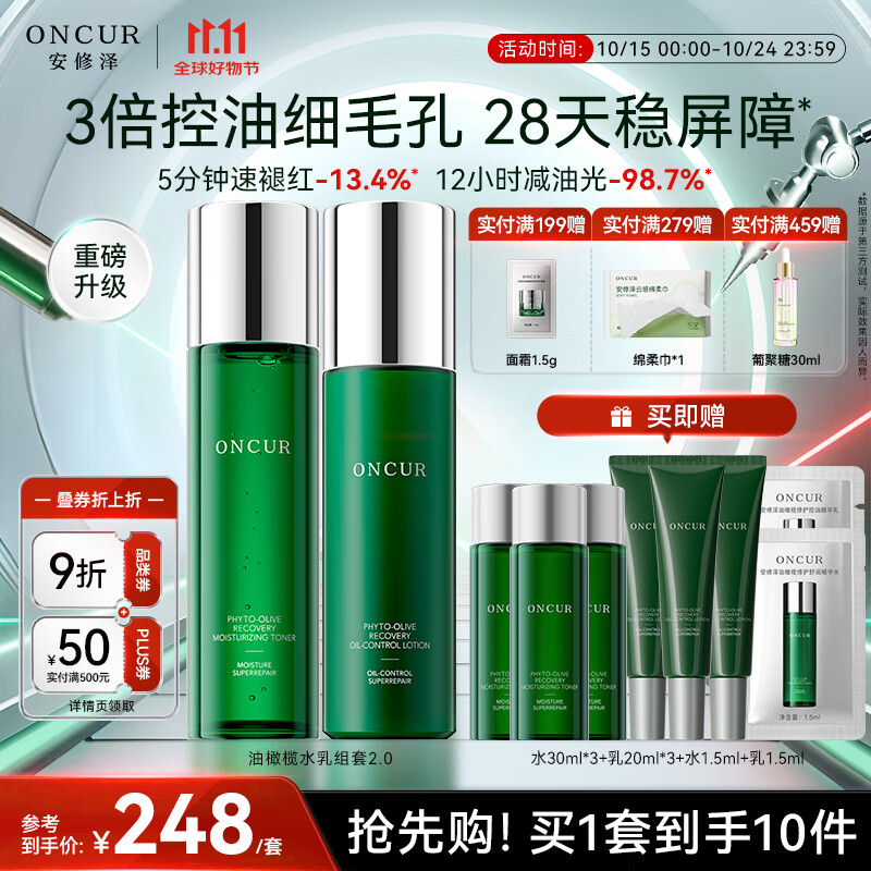 安修泽油橄榄水乳套装舒缓修护保湿控油150+120ml生日礼物