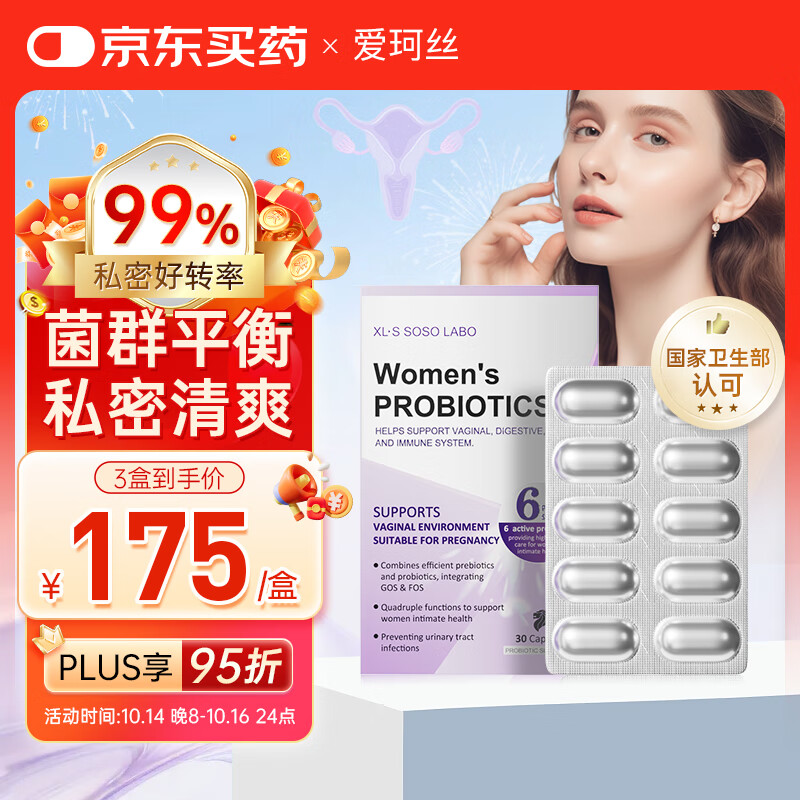 XL·S SOSO LABO爱可丝女性益生菌蔓越莓乳酸杆菌孕妇妇科私处护理爱珂丝30粒*3盒