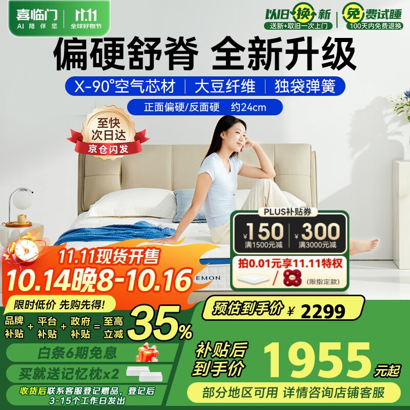 喜临门床垫 2cm3D芯材独袋弹簧床垫 大豆纤维床垫 梦蝶Max1.8x2米 偏硬