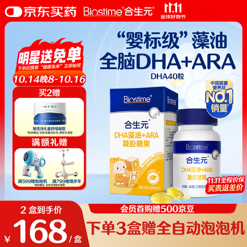 合生元(BIOSTIME)婴幼儿藻油非鱼肝油dha软胶囊 孕妇青少年学生补脑40粒