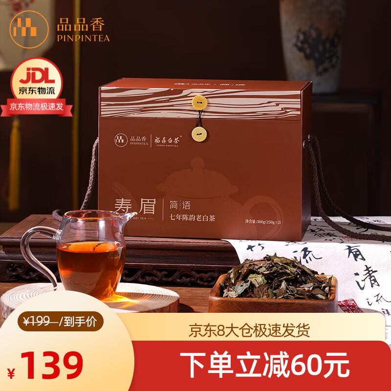 品品香茶叶福鼎白茶寿眉简语大份量装散茶自己喝囤茶口粮装茶叶礼盒 七年陈老白茶 500g*1盒 年份茶