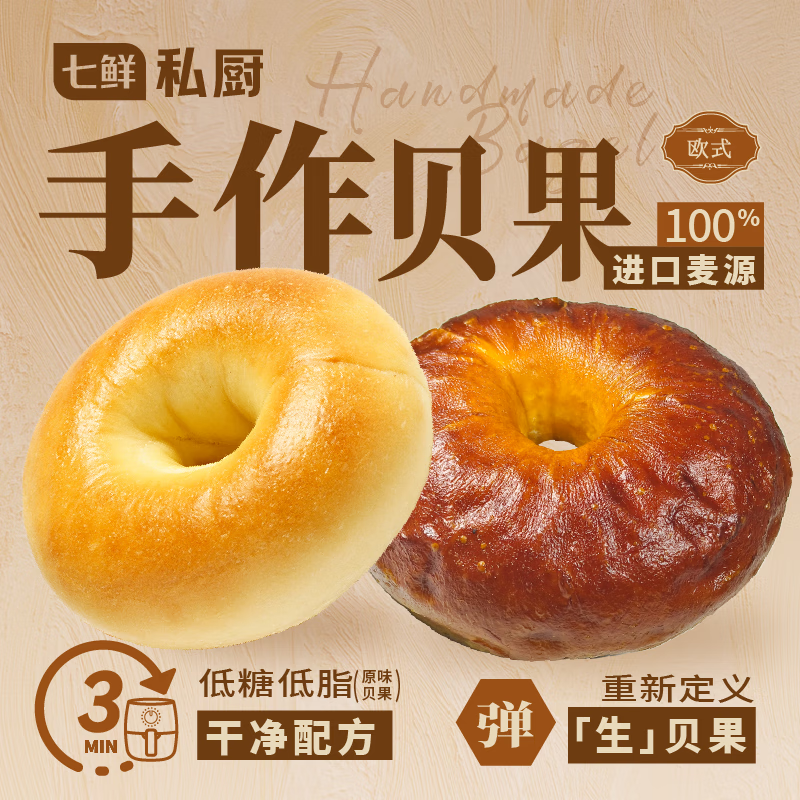 七鲜私厨手作贝果组合600g 健康早餐 低糖 贝果 面包