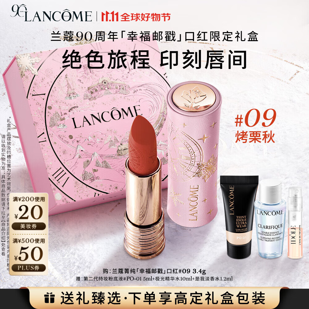 兰蔻全新菁纯唇膏哑光口红#09烤栗秋圣诞限定礼盒礼物生日送女友
