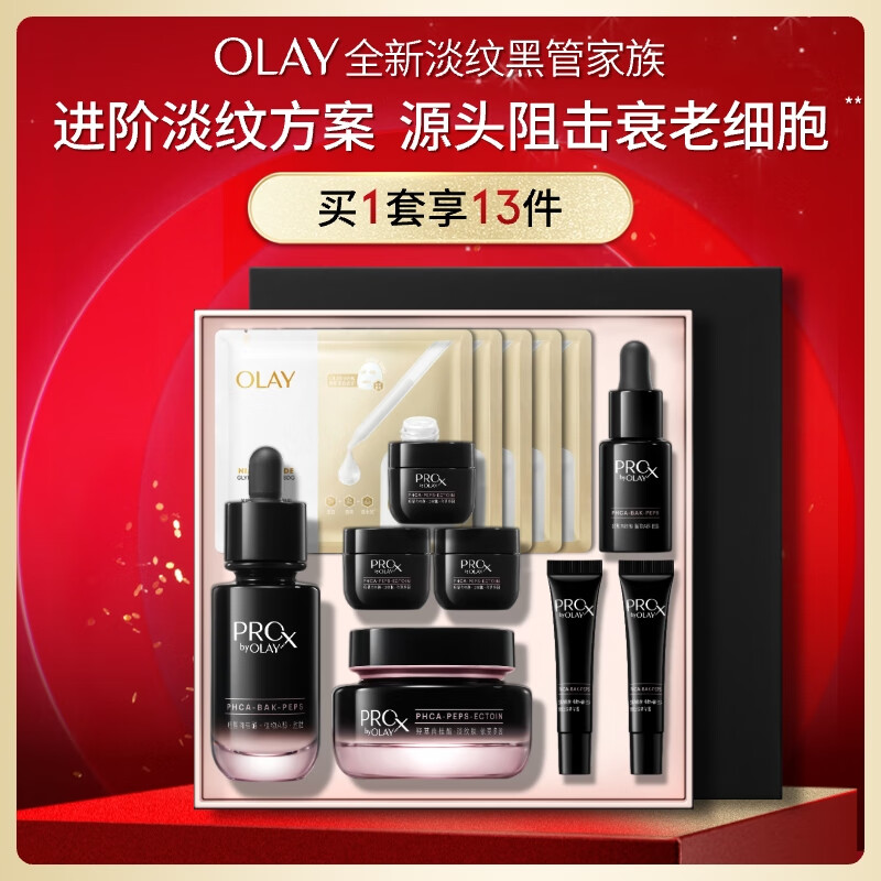 玉兰油(OLAY)淡纹黑管面霜面部精华礼盒抗衰老护肤品套装生日礼物送女友陈丽君