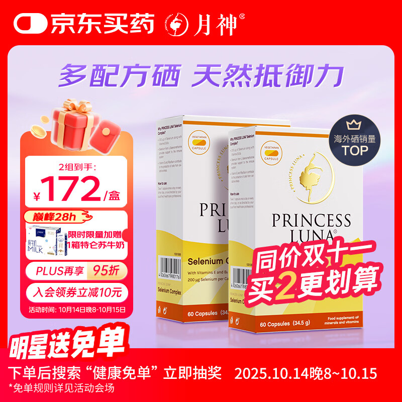 月神硒硒片有机硒提升抵御力提高女性补硒元素富硒胶囊天然 60粒*2盒