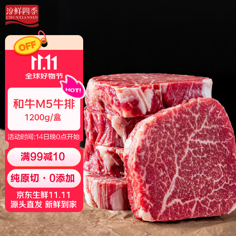 淳鲜四季X 京东PLUS会员联名款 牛排原切和牛M5雪花牛排净重2.4斤生鲜牛扒