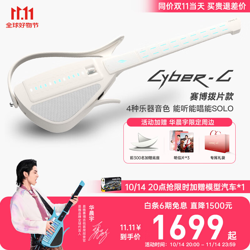 enya恩雅赛博吉他自动挡无弦吉他伴奏弹唱智能电吉他CyberG拨片款白色