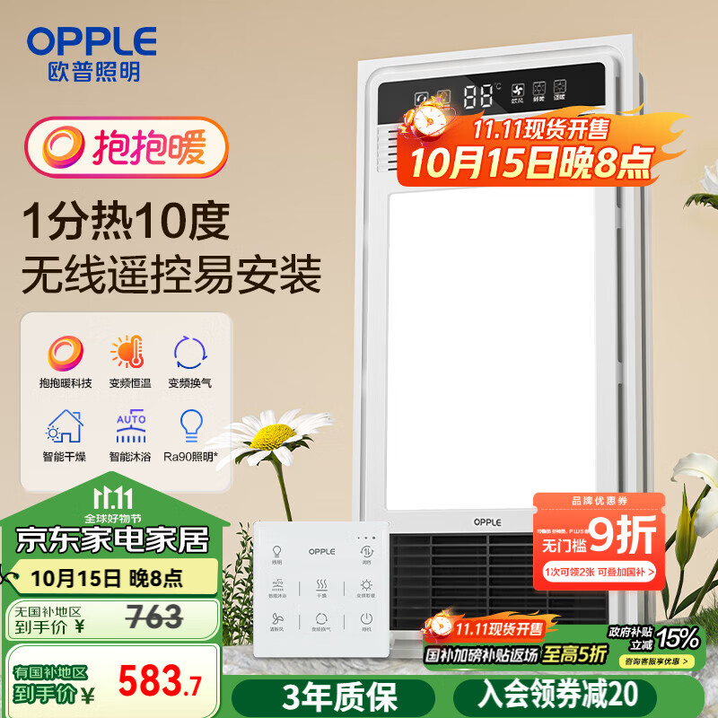 欧普风暖浴霸灯卫生间取暖器照明排气一体集成吊顶无线遥控F1202-Y