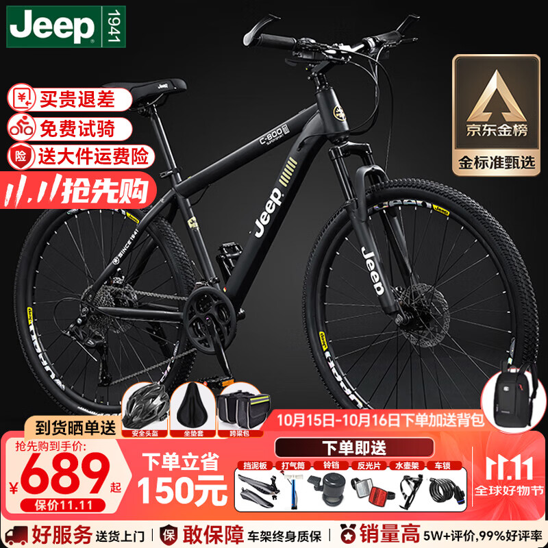 Jeep吉普山地车自行车学生成人减震碟刹通勤变速越野青少年巡航者C800 巡航者-辐条轮-骑士黑 26寸(建议身高160-183cm) 24速运动版