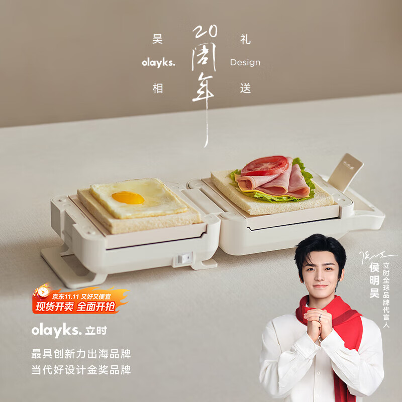 olayks三明治机早餐机华夫饼机小型面包机电饼铛双面热压吐司机加厚封边可拆洗盘赠华夫饼盘国家家电补贴