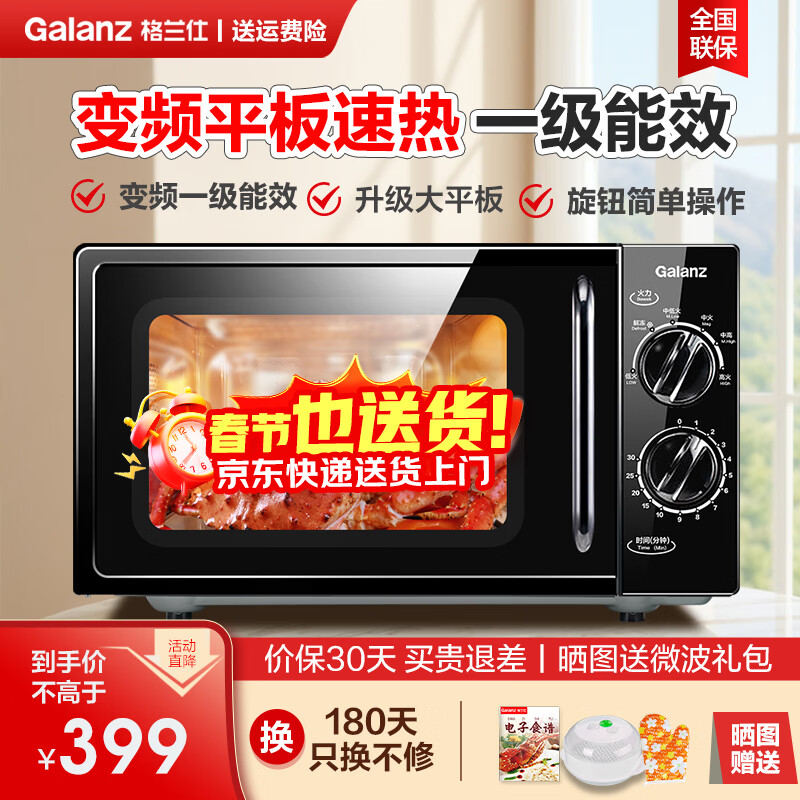 格兰仕变频微波炉家用小型复古20L智能多功能一体机 平板易清洁速热解冻 双旋钮便捷操作 一级能效DG 20L变频平板一级能效