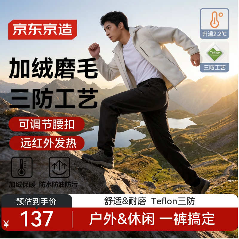 京东京造【加绒】冲锋男裤冬季休闲裤户外男士加绒裤子运动裤 黑色 L