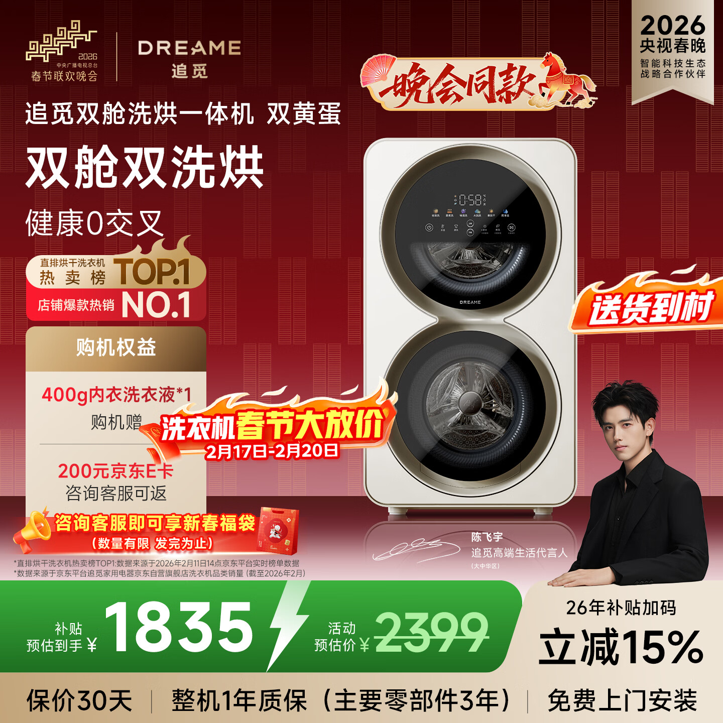 追觅【春晚同款】双黄蛋双舱分区洗烘一体0.5KG+0.5KG滚筒双桶洗衣机洗内衣袜子智投除菌DWM01M30WACN