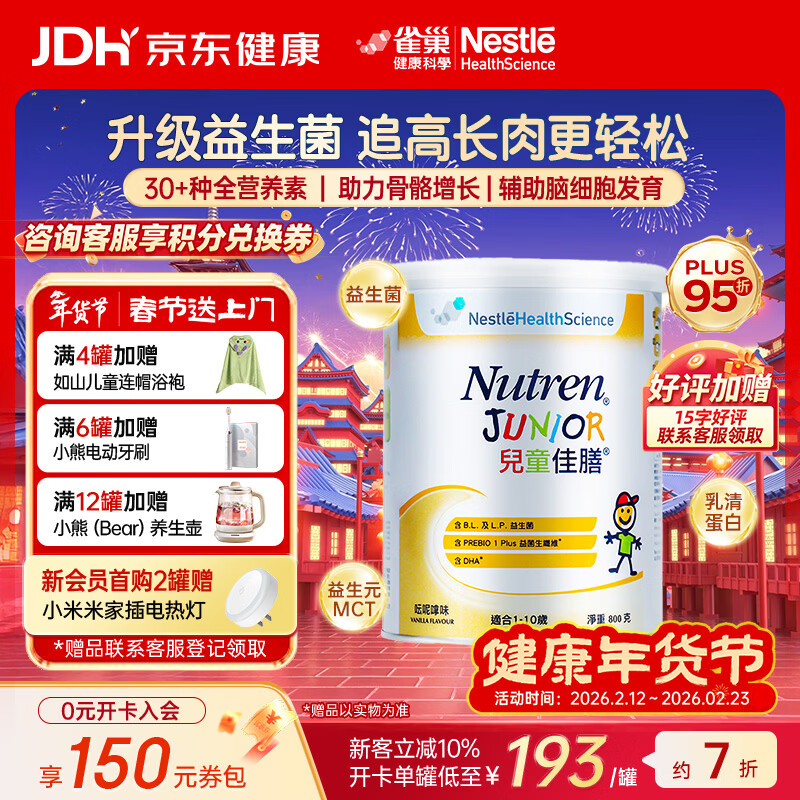 雀巢港版小佳膳儿童佳膳益生元乳清蛋白全营养配方奶粉1-10岁助力成长 800g*1罐 【约7天量】新效期