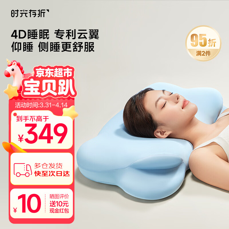 时光存折云朵枕头 记忆棉护颈枕护脊颈椎枕侧睡趴睡枕儿童枕学生成人可用 高枕【薰衣草味】-晴空蓝(建议身高>170cm)