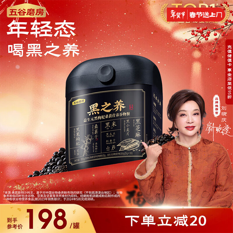 五谷磨房黑之养益生元黑枸杞桑葚营养谷物早餐粉833g