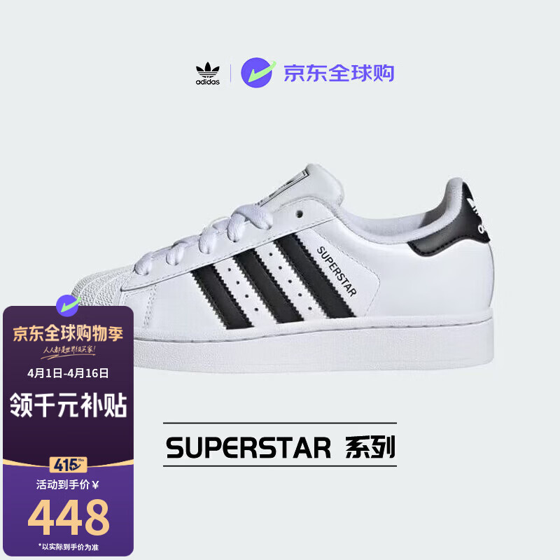 阿迪达斯三叶草Superstar2贝壳头潮流运动青少年女板鞋JH9976白色 37