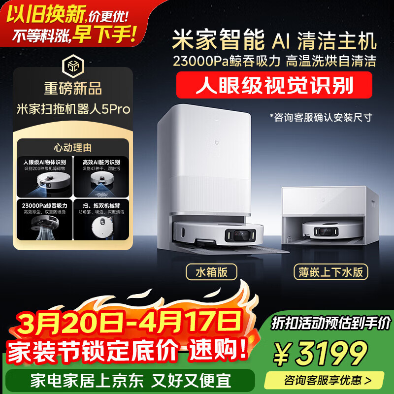 米家【小米发布会同款】最强扫地机器人5 Pro AI 智能互交双机械臂大吸力扫拖一体拖地洗地机