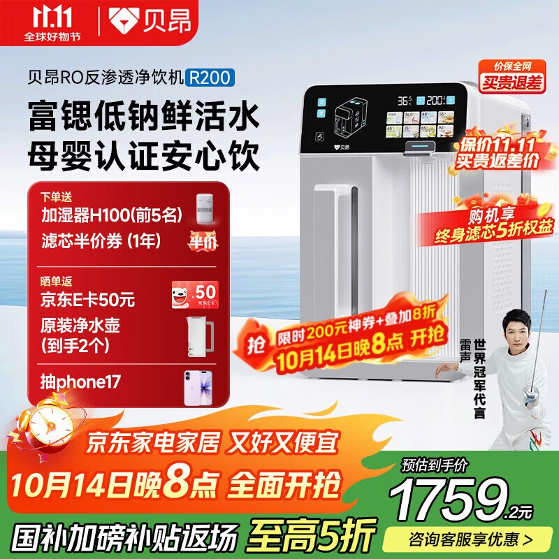 贝昂母婴级台式净饮机100G反渗透即热直饮净水一体机家用免安装R200 【国家补贴】