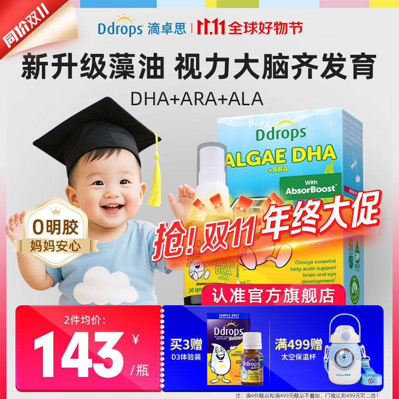 Ddrops滴卓思DHA+ARA喷剂不卡喉藻油dha婴幼儿0-3岁学龄儿童dha 【新升级】藻油DHA+ARA
