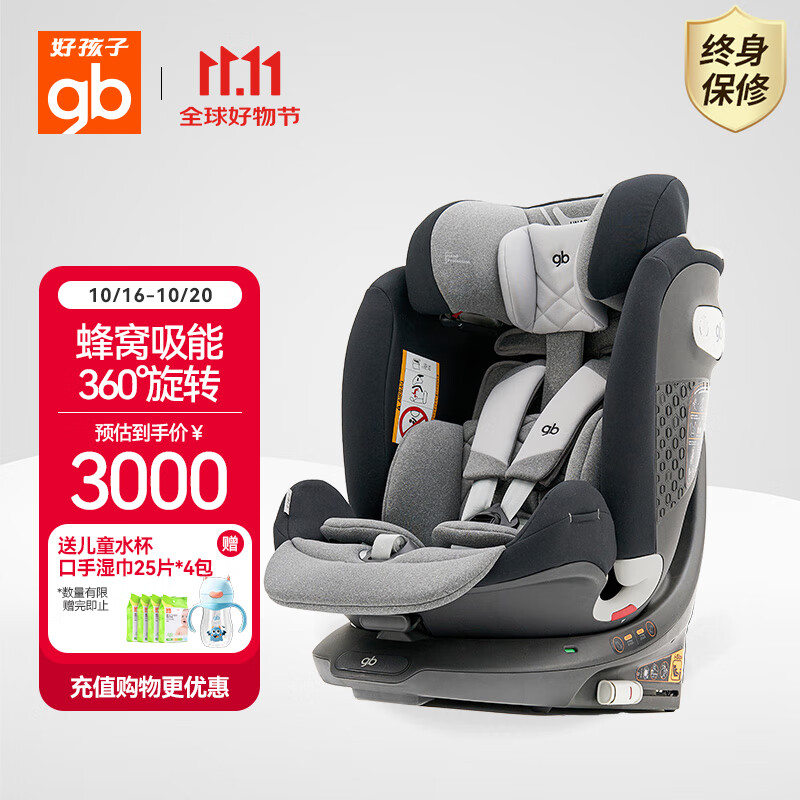 好孩子(gb)儿童安全座椅0-7-12岁通风散热车载婴儿安全座椅 安全舱1号星际灰